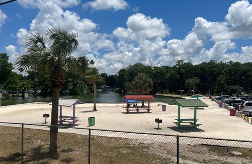 Weeki Wachee cottage that sleeps 2 adults. Bedroom has a king size bed and the couch pulls out and sleeps 2 small kids only. Plenty of space outside to park your boat, trailer, or toys. There is a 10x20 RV pad with 30A hookup available for extra. No dump station. Two kayaks, fish cleaning table, fire pit, horseshoes, cornhole, netted gazebo, smartTV, propane grill, board games, and hammock. Laundry inside. 1 dog (50lbs).