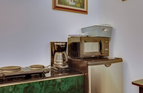 KITCHENETTE: Coffee maker, hot plate, mini fridge, microwave, cooking basics