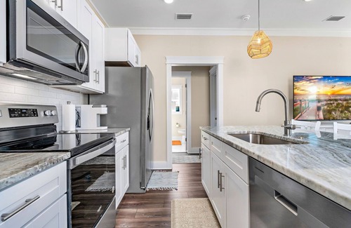 Nestled just two blocks from the lively downtown area, Slay the Bay is the perfect vacation rental for families and friends, accommodating up to six guests in comfort. This charming home features an inviting living room with a smart TV and high-speed internet, setting the stage for cozy gatherings after exciting adventures.