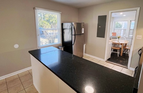 Enjoy a meal under the covered patio, rinse off your feet under the outdoor shower after a trip to the beach, play with your dog in the fenced backyard, or take a break from the sun and watch TV in the living room! Washer/dryer included (in same room as dining and futon). Charcoal grill. Linens Included. Wi-Fi. No smoking.