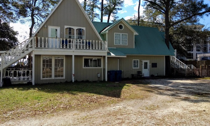 One of four units in a local historic building, setting next to Hudson Marina on Terry Cove. Set in a peaceful residential area with water access to the cove at the end of the street. Two bedroom, one bath with secluded private porch off the living room. Able to sleep six comfortably with a queen bed, two full beds and a queen size sofa sleeper. Minutes away from the beach, boating, fishing, shopping, restaurants, entertainment, etc. but away from the busy highway and crowds.