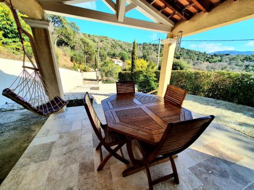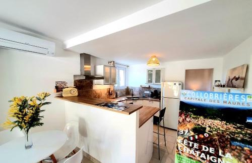 Petit Paradis offers accommodations in Collobrières, 15 miles from Le Pont des Fées and 15 miles from Chateau de Grimaud. This property offers access to a terrace and free private parking. Penitents Chapel is 15 miles from the apartment and La Favière is 17 miles away. The air-conditioned apartment consists of 1 bedroom, a living room, a fully equipped kitchen with a dishwasher and a coffee machine, and 1 bathroom with a shower and a hair dryer. Guests can take in the views of the mountain from the patio, which also has outdoor furniture. For added privacy, the accommodation features a private entrance. A selection of options including fresh pastries, fruit, and juice are available for the continental breakfast. Guests at the apartment will be able to enjoy activities in and around Collobrières, like snorkeling, diving, and cycling. Guests at Petit Paradis can enjoy fishing and hiking nearby, or make the most of the garden. Toulon Train Station is 28 miles from the accommodation, while Zénith Oméga Toulon is 28 miles from the property. Toulon - Hyeres Airport is 20 miles away.