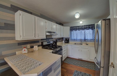 Embrace Petoskey’s Sun-Splashed Skylines by Little Traverse Bay. Enjoy our beautiful house in a quiet neighborhood, minutes from the shops in Petoskey’s historic gaslight district, Bay Harbor, East Park, Little Traverse Wheelway and Odawa Casino. Enjoy a cup of coffee or your favorite beverage on the deck while catching peeks of the bay through the tree line. Let your pets run and play in the fenced-in yard. Pet Fee $75. The kitchen is completely equipped with microwave, single coffee maker, toaster, dishwasher, ice-maker, dishes, pots & pans and cooking utensils. Cable TV, DVD's, Netflix, board games. Towels. Ring Doorbell and Garage Camera on site.