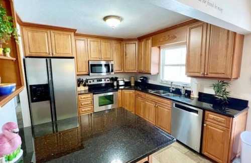 Pets, Plunges & Peace on the Gulf of Mexico is located in Nokomis. Pets, Plunges & Peace on the Gulf of Mexico provides accommodation, featuring Fireplace/Heating, Pool, TV, among other amenities. This House features Fireplace/Heating, Pool, TV, to make your stay a comfortable one.
