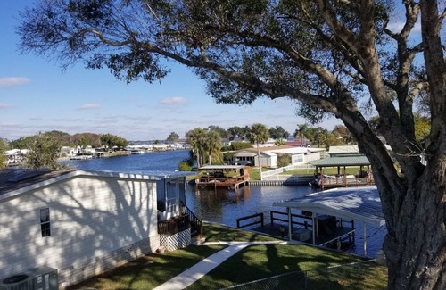 Wonderfully decorated manufactured home on the Harris Chain of Lakes. Big driveway for parking your truck and boat. Sleeps 6 people. Cozy screened porch and comfortable back deck over looking the water. Tie your boat up or fish from the dock. Public boat launch five minutes away. Only minutes from Mount Dora, Eustis, Leesburg and right around the corner from downtown TAVARES!
