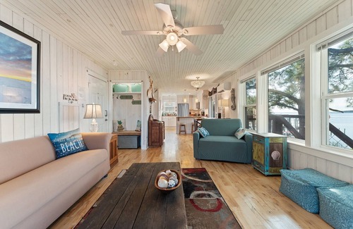 This open living concept living space has large windows with spectacular views of the water of East Bay – Red Fish Cove. Bring your 4 legged family members with prior approval and payment of our pet fee of $170 per stay. We are rated 5 Star on Vrbo and on Airbnb.