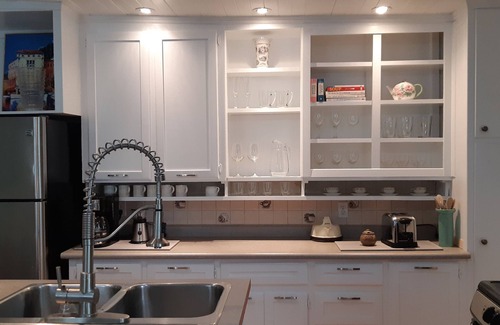 The Stone Carriage House says it all. It is a mid 19th century coach house which is now 3 separate homes each with its own distinct character. The building is steps from Main St. It is just a quick walk to the Regent Theater, restaurants and music. It is a great home base for exploring all that County has to offer: food, wine, beautiful scenery, and Sandbanks Park (and the rental comes with a park pass). It's location within town allows you to explore the surrounding area during the day but gives you the opportunity to return to your own pied de terre in the evening to relax with friends over dinner or a bottle of local wine. The house is filled with period antiques which create a feeling of yesterday year but the comforts of home. There are 2 other homes in the building each with small yards which would allow the possibility for several friends or family members to travel together but have some privacy. Phaeton is light and bright. It is the smallest of the 3 homes but it is still close to 1500 sq feet. It has a great east facing enclosed porch for a morning coffee. Each of the homes have their own unit is sophisticated and yet cozy. It would be ideal for a girl's weekend or a chance for two couples to spend time together or a family to spend quiet evenings after a day at the beach. You may want to glance at the other 2 stone carriage house listings. Each is different and has its own distinctive personality. This and my other 2 listings include a Sandbanks pass. The price quoted includes everything except tax. There are no extra charges for cleaning, laundry or internet.