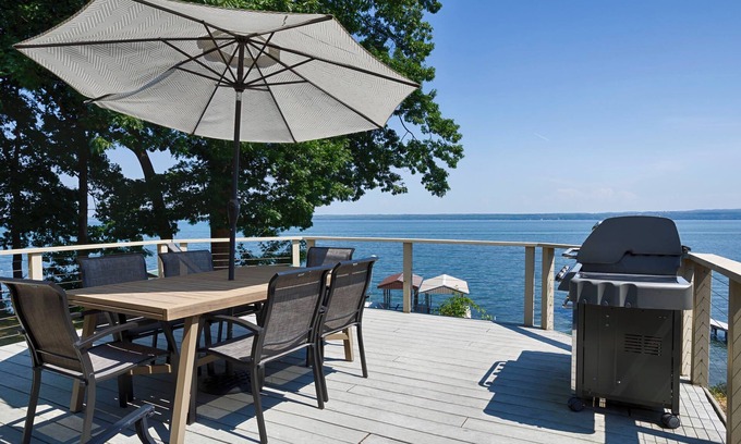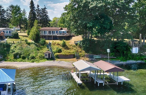 At the lakefront 100ft of frontage is yours to enjoy! Whether you've come to enjoy the views, swim in the cool Seneca Lake waters, or fish off the dock – there's something for everyone!