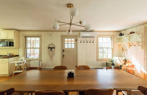 Tucked among tall trees and surrounded by beautifully landscaped gardens, Phoenicia Farmhouse is a warm and inviting escape in the heart of the Catskills —ideal for peaceful getaways year-round.