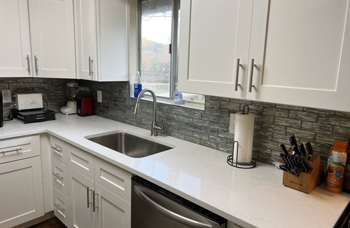 Newly remodeled kitchen and bathrooms. Lots of space. Two washers and dryers in the basement. New deck and enclosed garage.