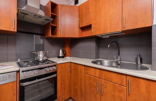 This fully equipped two-bedroom apartment can accommodate 6 people. It consists of a kitchen, 2 bedrooms, a living room and a bathroom with a bathtub. The apartment has been designed to provide not only comfort and functionality, but also aesthetic values. Consistent and stylish design goes hand in hand with modern amenities, creating a friendly and contemporary character of the place. The comfort of your stay is ensured by free WiFi, a flat-screen TV and well-equipped kitchen and bathroom. The kitchen has all the equipment for self-cooking, such as a gas stove, oven, microwave and kettle. Additional facilities include a coffee machine and a dishwasher. Our guests can enjoy beautiful views from the balcony. Free toiletries, towels and bed linen are provided for an easy start to each stay.