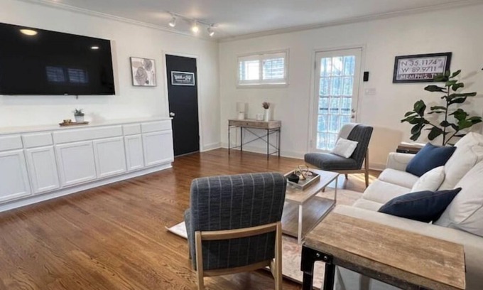 Be close to everything Memphis has to offer when you stay at this cute and cozy home nestled in the lovely, family friendly Joffre neighborhood located on the border of Midtown and East Memphis. Enjoy being minutes to downtown while having a fenced yard and off street parking! This home has beautiful recently renovated bathrooms including a soaking tub, large bedrooms with Smart TV’s (and large closets) as well as a dedicated work space in the master.
