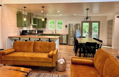 Fun for your whole family! Just 8 minutes from downtown Dahlonega! Your next family getaway is very convenient to wineries, hiking, and restaurants. This home is complete with 2 kitchens, home gym, front and back porches, a spacious yard, five bedrooms and your very own private pickleball/basketball court. You and your entire family will love this home: even on a rainy day, there is much to do without going out!! - Private Pickleball/Basketball Court - 6 Person Hot Tub - Home Gym - Skee Ball - Pac-Man/Galaga (10 other arcade games on the console) - Foosball - Rock Wall and Slide - Office Space - Outdoor Games - Board Games - Two Outdoor Fire Pits - Two Fully Equipped Kitchens - Spacious Front Yard - And plenty of Room for the Family The home comfortably sleeps 12: Main Floor: - King Bedroom with Attached Full Bathroom - Full Kitchen, Dining, and Living Room - Additional Half Bath - Laundry Room Second floor: - One Full Bathroom - Full Bedroom with Workspace - Queen Bedroom - Double Bunk Beds with Rock Wall & Slide Basement: - One Full Bathroom - Second Kitchen - Queen Bedroom - Pullout Queen Couch - Gym - Game Room This getaway is also close to some of our favorite spots: - Downtown Dahlonega - 8min - 52 West Brewing - 3min - Montaluce Winery - 6min - Amicalola Falls - 15min - Helen - 45min - Blue Ridge - 55min - Juliette Chapel - 3min - Walmart - 12min - Dollar General - 3min The home is easily accessible by any vehicle. You will pull into a shared driveway that splits off between our home and the neighbors. There are easy parking spaces for 4 cars, but more can squeeze in if necessary. One large or two small cars can park at the basement entrance, and 2-3 cars can park up top in front of the pickleball court. PLEASE DO NOT DRIVE OVER OR PARK ON THE PICKLEBALL COURT! But, you are more than welcome to park on the grass if you need to. Absolutely NO parties or smoking are allowed on premises. Smoking will incur a $250.00 fee PETS: Pets are not allowed and any pets will incur a $250.00 fee per pet. Service animals are allowed and must be trained to perform a task/service for the responsible owner. Please notify us if you will be bringing a service animal so we can add them to your reservation. ESAs do not qualify as service animals and will be subject to charges. Lumpkin County Short Term Rental License: 4915