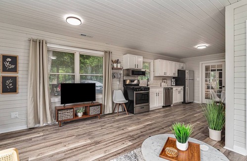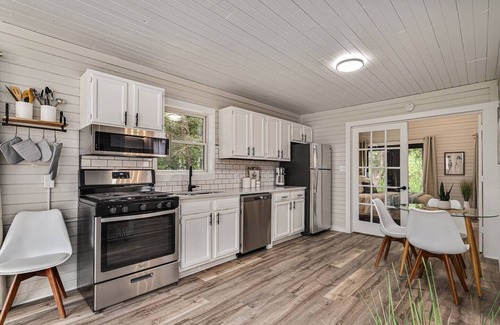 Located in Pickleball Paradise, a boutique resort nestled in the woods on 3 acres. Blueberry Bungalow, one of just 4 vacation retreats in Pickleball Paradise, sets the stage for comfort and relaxation. Featuring an ourdoor Barrel Sauna with 1 bedroom, 1 full bathroom, and spacious living area, this home offers plenty of space for a small group of up to 5 to unwind and create lasting memories. Enjoy the modern comforts and convenience of a full kitchen, ensuring a delightful stay amidst the peaceful surroundings.