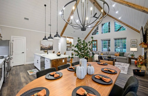 Escape to the tranquility of the woods at Lazy River Retreat, a brand-new, single-story cabin offering 1,805 square feet of modern luxury wrapped in cozy cottage-style charm. This beautifully designed home boasts 3 spacious bedrooms and 3 full bathrooms, making it perfect for families, groups, or couples seeking a peaceful getaway. Set against a serene natural backdrop, Lazy River Retreat provides all the amenities you need for a relaxing and unforgettable stay. LAZY RIVER RETREAT IS NOT A PET FRIENDLY HOME AND ALSO HAS A VERY STRICT NO SMOKING POLICY INSIDE THE HOME. LAZY RIVER RETREAT HAS A STRICT NO THEFT POLICY, INCLUDING ALL LINEN, KITCHEN, AND DECOR ITEMS. Please do not move/remove furniture or decor. All linens, furnishings, and decor make our home special, are our personal property, and are inventoried after each stay. Do not ruin the specialness of Three Creeks Lodge by taking what is not yours and losing your future stay privileges.