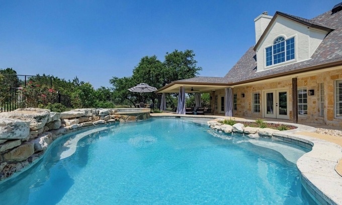 Best-rates for the Dripping Springs house starts from $450 per night with includes Pool, TV, Bedding/Linens, Laundry, Sports/Activities, Fireplace/Heating, Guest Services, Hot Tub, Internet, Kitchen, Air Conditioner, Private Pool, Wellness Facilities, Child Friendly, Parking, Security/Safety, Barbecue/Outdoor Cooking StayAndPlay offers fully equipped golf villas, golf hotels, golf resorts, luxury golf cabins, and exclusive golf retreats, making it easier than ever to find your perfect golf escape — ideal for families, peaceful getaways, or pet-friendly retreats with the whole crew.