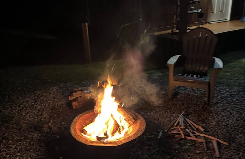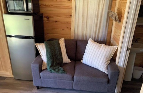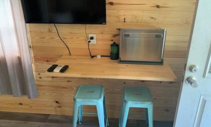 Comfortable beds, sleeps 4 adults, tankless water heater (endless hot water!), heat and ac, microwave, ninja grill and air fryer, 42 inch smart tv, full size refrigerator, fire pit and plenty of parking space