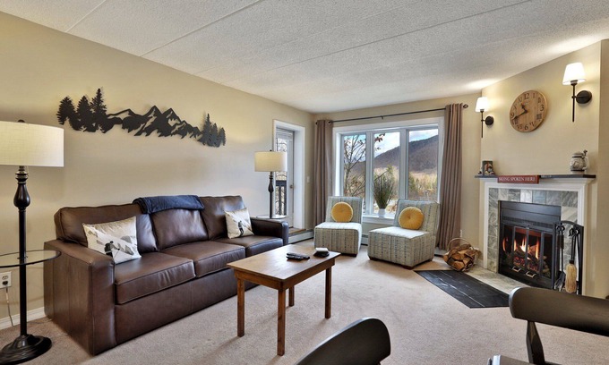Welcome to Pico's Doorstep, your mountain retreat at our one-bedroom, one-bathroom condo in Village Square, nestled slopeside at Pico Mountain in Killington, Vermont. Boasting ski on/off access and just a 10-minute drive (or bus ride) to Killington Resort, this is the perfect spot for ski lovers and mountain adventurers. Our condo features a cozy living room with a comfortable sofa bed, perfect for relaxing after a day on the slopes. The open kitchen is fully equipped to cater to your culinary needs. Retreat to the primary bedroom, featuring a plush queen bed, ensuring a restful night's sleep. The bathroom is equipped with a tub/shower combo. Stay connected and entertained with WiFi and streaming services, and enjoy the warmth of the fireplace on chilly evenings. Step out onto the patio to bask in the stunning mountain views. For your convenience, EV chargers are available onsite. Plus, take advantage of the nearby Pico Sports Center, offering gym facilities and a pool for your fitness and leisure needs. This condo is your gateway to a memorable stay in the heart of Vermont's ski country.