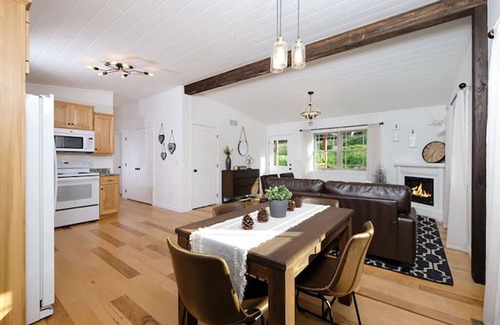 Located just minutes from the Parkway in Pigeon Forge and roughly 15 minutes to Gatlinburg, Mountain Mist is the perfect combination of convience and privacy. This 2 bedroom 2 bathroom cabin features a private hot tub, an outdoor fire pit, and a private backyard. This cabin would be perfect for a family with or without children. WIth the private backyard the kids can run that energy off, or the kids at heart can play a game of catch or frizbee. Don't forget to roast marshmellows on the outdoor private fire pit on those summer nights! What are you waiting for? Book your perfect getaway at Mounatin Mist today!! ********The top bunk bed has a weight limit of 150lbs********