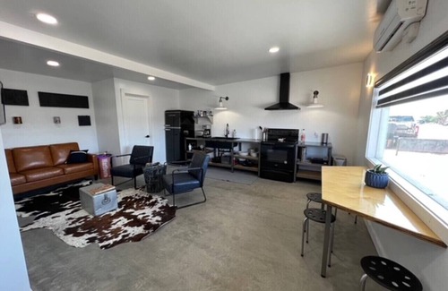"Service Station Vacation” baby! This unique suite in our micro hotel is a recently renovated heirloom adobe suite inside an old gas station. This particular unit, B, is a two bedroom one bath private living oasis with sleeping for four (4) guests. This Vintage Western Gas Station design will have you and three of your friends "Gassed Up" and recharged for whatever festivities you might be gettin’ in to.