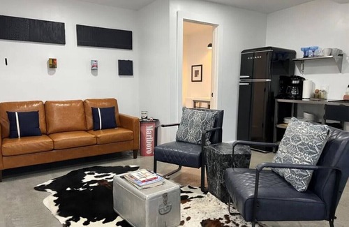 With unique decor, modern amenities, and an ideal location, this whimsical western stay is the perfect place for a memorable and fun vacation experience. Here you can enjoy the best of both worlds - the charm of a classic Western style with all the comforts of modern living. Our property is located in a former gas station, which adds a delightful touch of nostalgia to your stay. However, we have completely renovated the interior to provide you with a stylish and comfortable living space. From the moment you step inside, you'll be transported into a fun and whimsical Western world. Our unique decor features cowboy boots, cactus plants, and rustic wood accents, all blending together to create a one-of-a-kind atmosphere. But it's not just about aesthetics at Whimsical Western. We also make sure to provide all the modern amenities you'll need for a comfortable stay. From high-speed WiFi to a fully-equipped kitchen, we have everything you need to feel at home. You and up to 13 of your closest friends can saddle up and stay at underneath the starry night sky here, making it the perfect choice for group trips and family vacations. And with a spacious outdoor area, you'll have plenty of room to relax and mingle with your companions. What's more, our prime location puts you just minutes away from all the best attractions in town and is the first place you want to stop after exploring Big Bend. So whether you want to explore the local cowboy culture, hit the shops, or try some of the awe-inspiring nature around, we'll be here waiting for you. Book your stay now and get ready to "giddy-up" all over town!