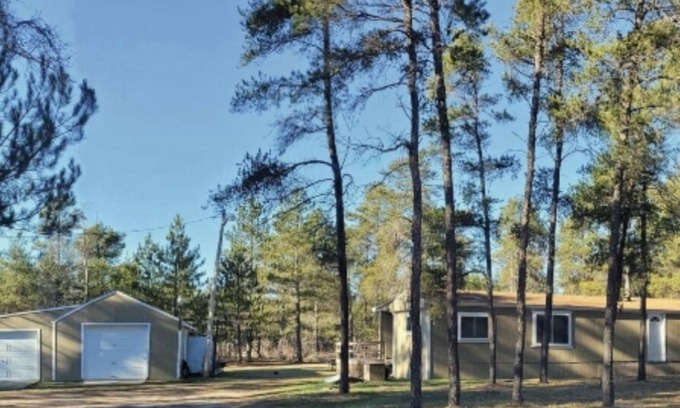 Up north Michigan getaway. Pine trees and trails for miles not to mention just a mile or so from the river for some canoeing and or kayaking. Perfect location for a vacation or short trip with family or friends.