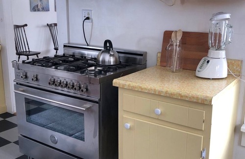 The property includes acres of fields and pastures perfect for walking, snowshoeing and cross-country skiing. A wrap-around porch, large backyard deck, serene pond, fire pit, and outdoor shower complete the outdoor living space. An enormous great room with original exposed posts and beams, smart TV, working fireplace, and stocked library ensure cozy indoor living. The kitchen is spacious and recently updated with top-of-the-line appliances. The bedrooms are outfitted with hotel-quality linens and memory foam mattresses.