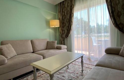 Featuring pool views, Pine Club Apart Hotel in Kuşadası provides accommodations and a garden. This guest house offers free private parking and full-day security. The guest house features mountain views, a sun terrace, a 24-hour front desk, and free Wifi is available throughout the property. The guest house will provide guests with air-conditioned units with a wardrobe, a kettle, a fridge, kitchenware, a safety deposit box, a flat-screen TV, a balcony, and a private bathroom with a shower. There's also a well-equipped kitchen in some units equipped with an oven and stovetop. At the guest house, every unit is fitted with bed linen and towels. There is a coffee shop and bar. The guest house conveniently has an outdoor pool. Kusadasi Marina is 10 miles from Pine Club Apart Hotel, while Great Theatre of Ephesus is 20 miles from the property. The nearest airport is Izmir Adnan Menderes Airport, 65 miles from the accommodation.