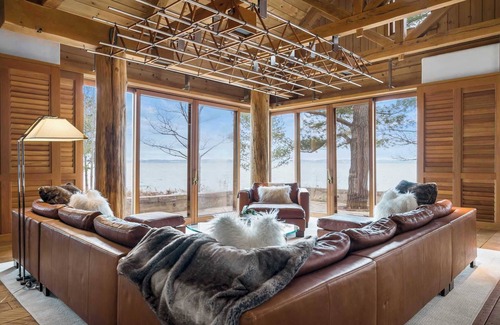 Welcome to Pine Hollow, a private Northern Michigan estate where architectural mastery meets the natural beauty of Lake Michigan’s East Bay. Spanning 17,000 square feet on seven pristine acres, this retreat was crafted with Michigan white oak timbers and locally quarried stone, blending organic textures with refined luxury. The result is a residence of rare distinction, designed for those who expect the extraordinary.