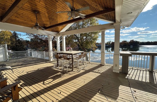 Relax with the whole family at this peaceful place to stay. This home has a large deck with beautiful views of lake #4 on Pine Lake. Plenty of space to relax on the deck and down by the water. The boathouse down by the water includes kayaks, a paddleboard and water toys.