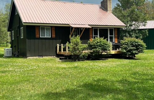 Welcome to our cozy 3-bedroom vacation rental, where a vaulted ceiling and charming fieldstone fireplace create a warm and inviting atmosphere. The updated bathroom and kitchen, featuring stainless steel appliances, offer modern comfort in a serene setting.