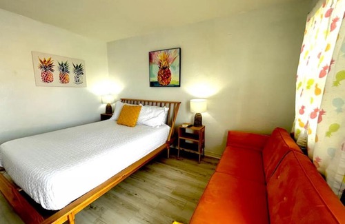 Pineapple Shores Retro Inn 6 offers accommodations in Daytona Beach, 6.6 miles from Daytona International Speedway and 7.9 miles from The Casements. The property is around 8.9 miles from Ponce de Leon Inlet Lighthouse Museum, a 8-minute walk from Congo River Adventure Golf Daytona, and 2 miles from Oceans West Golf Club. Free Wifi is available throughout the property and Daytona Beach is a 15-minute walk away. Offering 1 bedroom, this air-conditioned apartment features 1 bathroom with a bath and a hair dryer. A TV is available. For added privacy, the accommodation features a private entrance. Ocean Center is 2.8 miles from the apartment, while MOAS Museum of Arts and Sciences is 4.6 miles from the property. Daytona Beach International Airport is 5.6 miles away.
