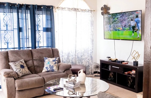 Beautiful (3) three bedrooms, (3.5) bathrooms apartment with beautiful mountain views, just minutes from downtown Montego Bay. The home is beautifully decorated, located in a very safe neighborhood, with all the amenities you need for your comfort, air condition, laundry, pool, kitchen, living room, Wi-Fi, dining room, utensils, balconies, porch, remote control gates, plenty of parking and big back yard for entertaining. Property is capable of sleeping up to (9) nine. All bedrooms are en suites. We have our own private transportation and driver available for hire if needed.