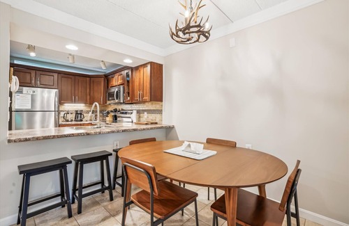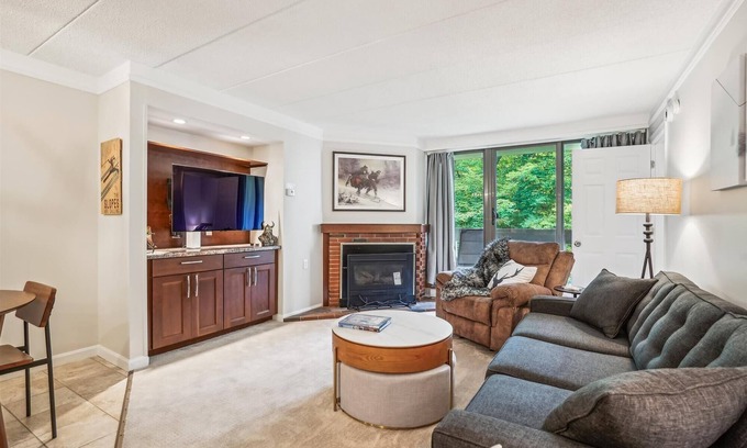 Recently renovated, Pinnacle B10 is a beautiful two-bedroom, two-bath condominium unit that can sleep up to 6 people. It is located .06 miles from the Killington Ski Resort. With spacious well-lit open floor concept, this two bedroom unit has a 2 twin bunk beds in the primary bedroom and a queen in bedroom in bedroom two with a pull out sofa in the living room. making this the perfect unit for family ski trips. The kitchen has a cozy open feel with a pull-up stool bar area and comes well equipped with a dishwasher, a full-size refrigerator, a full-size electric oven/stove, a drip coffee maker, and a microwave. The living room features a gas fireplace with a large flat-panel high definition tv. The living room is combined with a dining area and includes seating for six people. The living room gives access to a small balcony to enjoy the Killington mountain fresh air. For entertainment, each room has a flat-panel tv and Wi-Fi internet connection. A compact washer and dryer in stack formation are included in the unit as well. Complementary parking is available onsite. Washer and dryer included in the unit. The outdoor pool, hot tub, and, tennis courts are open during summer only. (please note this unit has no air conditioning)
