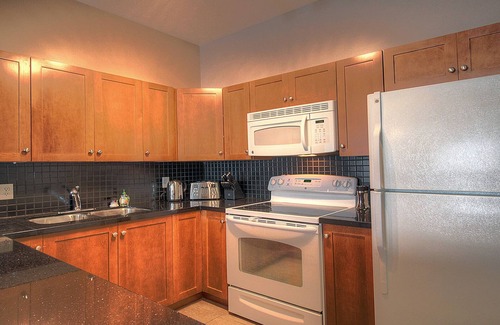 While you're here, you can enjoy all the comforts of home and more, including a refrigerator and an oven, as well as a stovetop and a dishwasher. Other amenities include laundry facilities, towels, an electric kettle, and kitchenware and utensils.