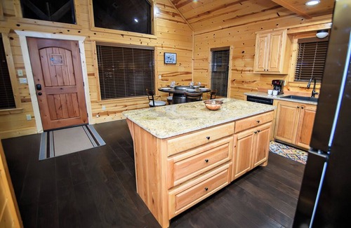 Are you looking for privacy mixed with convenience? Done. Pinyon Pine is centrally located, easy to find, and close to dining, shopping, & entertainment – some are even within a short walk from the cabin. Within just a few minutes you can go from the cabin to most local attractions and must-do destinations! But the great part is that when you are back at the cabin and want to separate from the on the go crowds and just slow down and enjoy the company of your own group – Pinyon Pine has you covered there as well. A large covered and private back deck will help set the tone you are looking for. The perfect location for an evening beverage and some fine dining straight from the grill to your plate, then as dusk settles in and the fire flies start their show – you can head on down to the fire pit. Tucked into a quiet corner on this large wooded lot, this is the ideal place to laugh at old memories while making new ones.