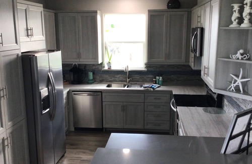 The fully equipped kitchen includes anything you would need for your culinary needs. To get you started the first morning, a Keurig coffeemaker with Starbucks k-pods and an electric tea kettle with Tazo tea supplies are provided. Cabinets are filled with enough glasses, dishes, silverware and cooking supplies for a large group. Paper towels, garbage bags, dishwasher pods, hand soap, laundry pods, tp and fabric sheets are provided for your convenience. New in 2022 - we have a high chair.