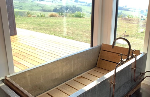 The huge open living space is great for groups. Concrete floors and bench tops offset by timber ceilings. Bathrooms feature concrete showers and bath with wood slats and double copper rain shower heads. Indoor wood fire and ducted heat pump to each room. Covered outdoor area is great in the winter with blinds and outdoor fire with grill and pizza oven. Huge infinity pool with large shallow area for the kids. Gas/woodfired hot tub and coffee machine are available. Set up is kid friendly (high chair, portacotavailable). Free wifi. Smart TV with Netflix and Sky in living room. TV with chromecast in master bedroom. Bedroom 2 can either be 2 single beds or a super king (please let us know if you would like the super king option). Plenty of parking