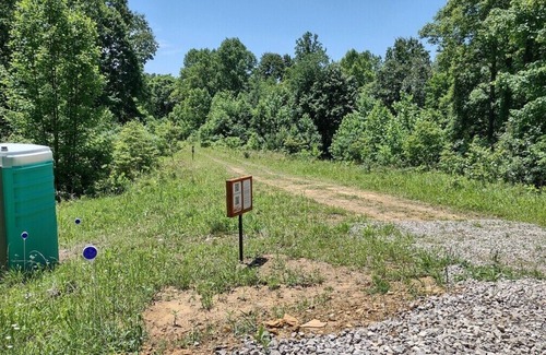 There is one shared clean portable toilet for all three plots included in a Camp Shroom Hocking Hills booking.
