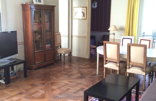 Apartment with antiques, in an authentic Parisian style, all furnished, within a former luxury Palace Hotel ***** with marble entrance and Belle Epoque elevator.