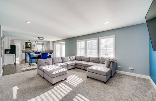 Spend your next stop in Illinois staying in style at this stunning Plainfield vacation rental! Located just minutes from nearby shopping centers, beautiful nature parks, and iconic Joliet attractions, like Harrah’s Casino and the Rialto Square Theatre, this quiet 4-bedroom, 2.5-bath house makes a perfect home base for keeping everyone entertained during your stay. Plan a day trip to see Chicago sights, tee off at top-rated area golf courses, or check out the Lake Renwick Preserve while in town!