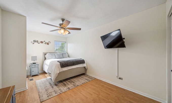 2188 SF renovated unit is strategically located a couple minutes from Route 59, with easy access to Shorewood, Joliet, Naperville, and Aurora areas! This property has 4 bedrooms, & 2 & a half bathrooms. Master bedroom has A KING BED, 3 Bedrooms have a Queen. 1 air mattress on-site (Total of 5 beds). Plenty of Kitchen utensils, all you need in a kitchen, including cooking spices and oils! Children friendly & lots of technology!