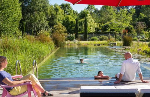The garden features a 16-metre natural swimming pool set within a lily-covered lake, giant chess, bocci court, 350 trees, an array of gloriously planted garden ‘rooms’ with many rare and exotic species and plenty of open space to kick a ball.