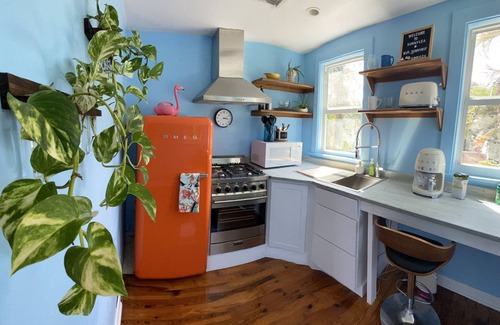 Plant lovers rejoice! Your space is colorful and green with propagations and tropical palms of all shapes and sizes. Whether you're walking to the Square or Convention Center for business or checking out the local beaches, breweries & bakeries of the neighborhood, you'll be able to appreciate the Florida-native beauty of historic Grandview Heights at the Sunnylea Bungalow.