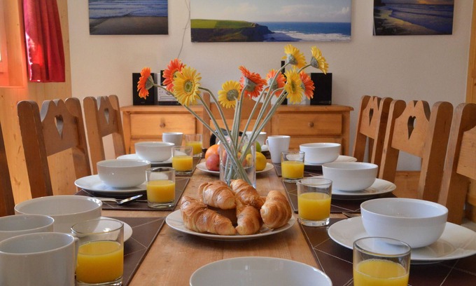 This lovely apartment is opposite the bakery / tea room, and within 100 metres of local restaurants and bars. The apartment is approximately 400-500 metres walk from the lift station or there is a free navette that stops nearby.