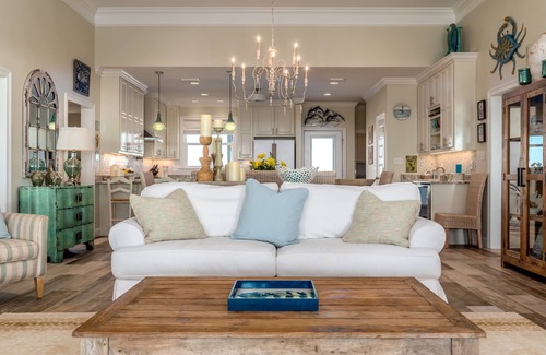 Introducing Playa Larga (Long Beach), a stunning custom-built Gulf front home that promises an unparalleled vacation experience. Enjoy breathtaking views of the Gulf of Mexico from your own private poolside oasis! This luxurious retreat features two custom primary suites, each with a king bed overlooking the Gulf and boasting spacious private baths. Bedroom 3 offers another king bed with an adjoining full bath, while Bedroom 4 is perfect for children with two queen beds and its own bath. Spanning approximately 2,400 sq. ft., the spacious living area is adorned with rustic wood-look ceramic tile floors throughout, creating a warm and inviting ambiance. All bathrooms feature marble vanity tops, with the primary baths showcasing large tiled showers for added comfort and luxury. The well-equipped kitchen is a chef's delight, equipped with high-end Cafe appliances, including a gas stove, marble countertops, ample cabinet space, and a generous pantry. Entertain effortlessly with a wet bar in the living area, complete with a built-in beverage cooler and wine cooler. For added convenience, a second fridge is located in the laundry room. Please note that while we strive to accommodate all guests, pets are not allowed due to the owner's child having allergies. Discover the ultimate blend of luxury, comfort, and Gulf Coast charm at Playa Larga—your perfect destination for creating lasting memories with family and friends.