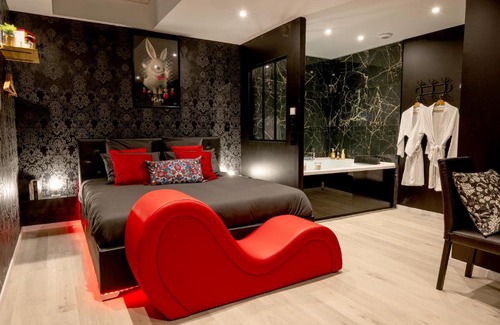 Located in Aubie-et-Espessas, within 15 miles of Matmut Atlantique Stadium and 16 miles of Bordeaux Expo, Playroom et Nuit Insolite provides accommodations with a garden and free WiFi throughout the property as well as free private parking for guests who drive. The property is around 16 miles from Chaban Delmas Bridge, 16 miles from La Cite du Vin and 17 miles from Wine and Trade Museum. The love hotel features a hot tub and room service. At the love hotel all rooms come with air conditioning, a desk, a flat-screen TV, a private bathroom, bed linen, towels and a terrace with a garden view. Playroom et Nuit Insolite has some units that feature a patio, and every room is equipped with a coffee machine. All guest rooms will provide guests with a fridge. Guests at the accommodation can enjoy a continental breakfast. Languages spoken at the reception include English and French, and guests are invited to request information on the area when needed. Stone Bridge is 17 miles from Playroom et Nuit Insolite, while CAPC Musee d'Art Contemporain is 17 miles away. The nearest airport is Bordeaux–Mérignac Airport, 22 miles from the love hotel.