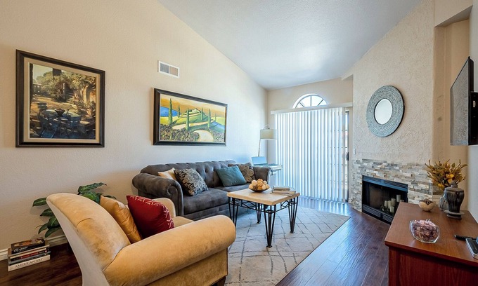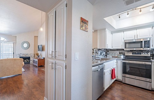 Welcome to your stay at the lovely Scottsdale condo—you will love this perfect Scottsdale location. Relax in your spacious master bedroom and bath with a full desk and workspace with full desk, great chair and monitor! The living/kitchen area is shared space. Be next to hiking, bike paths, shopping, golf courses, restaurants, entertainment and major hospitals. Mountain views are only minutes away and the sunshine never ends. The pool is steps away for year-round enjoyment. This condo is in a low key subdivision... make yourself at home! 30 day minimum. Please note that the Back Quarters are also rented and the main front and kitchen area are shared space.