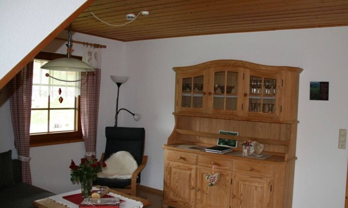 A well-kept, spacious holiday apartment on our farm with a balcony and 2 bedrooms, 70m² awaits you! Shower and hand towels are provided for you, including a change. We offer you a bread roll and drinks service. You are welcome to try our homemade food Our holiday apartment is a non-smoking apartment, but smokers are also welcome. You are welcome to smoke on the balcony.