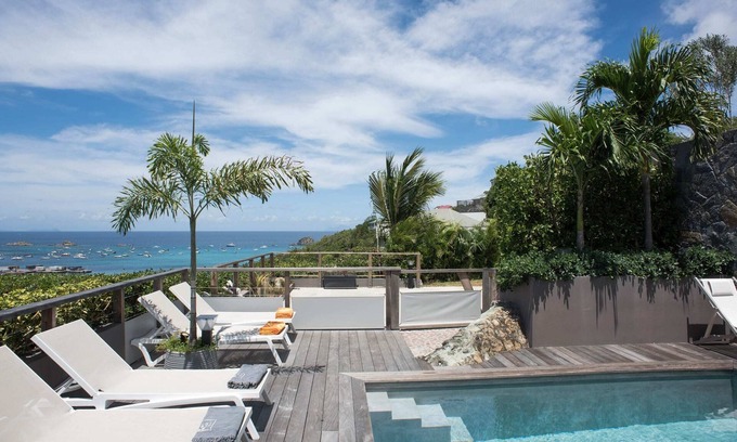 You can enjoy the heated pool while admiring the panoramic view of Gustavia and the sea. The terrace surrounding the pool is equipped with comfortable sun loungers, allowing you to bask in the sun and soak up the peaceful ambiance.